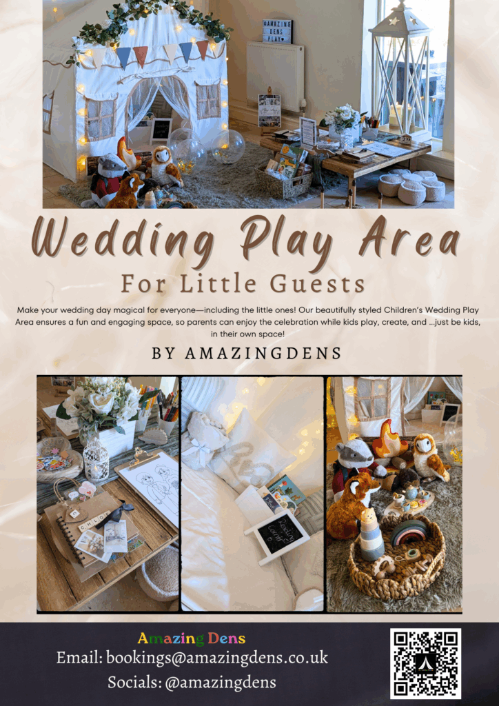 We provide a range of different play dens to suit each theme: each beautifully styled to entertain children while parents enjoy the beautiful celebrations. Our setups are carefully curated to match your wedding theme and keep little ones engaged.